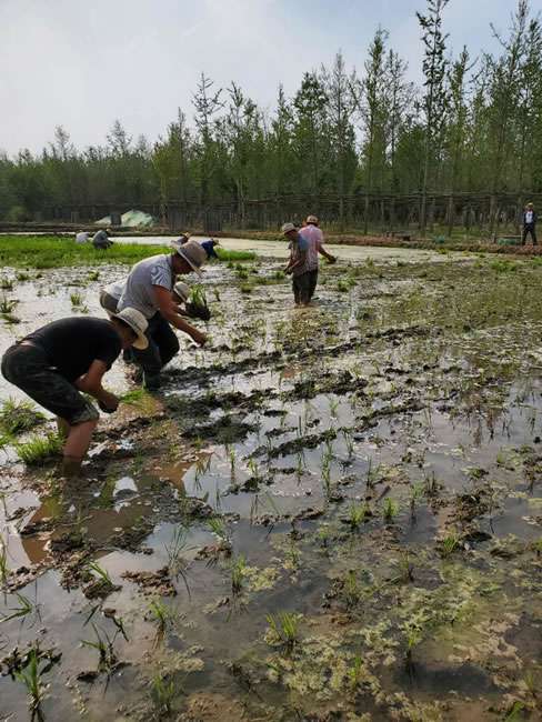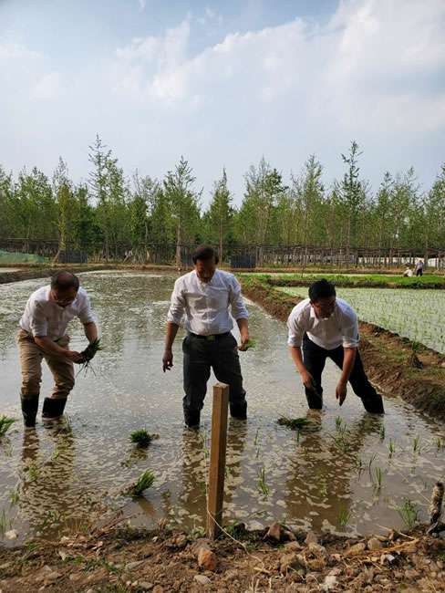 日前,上海俊瑶连锁餐饮管理有限公司董事长梁雨、总裁谢俊率集团高级管理人员来到位于北京西四环外的锦绣大地生态园,在景色迷人的玉泉山山下,同志们挽起裤脚跃进田里,生态园农业技术员一边弓腰示范,一边讲解道“插秧是个技术活,将秧苗窝在虎口处,既要轻又要稳,用巧劲儿将秧苗抛在泥里,不能抛得太深,又要确保植保灌溉时,秧苗不漂浮在水面上。”